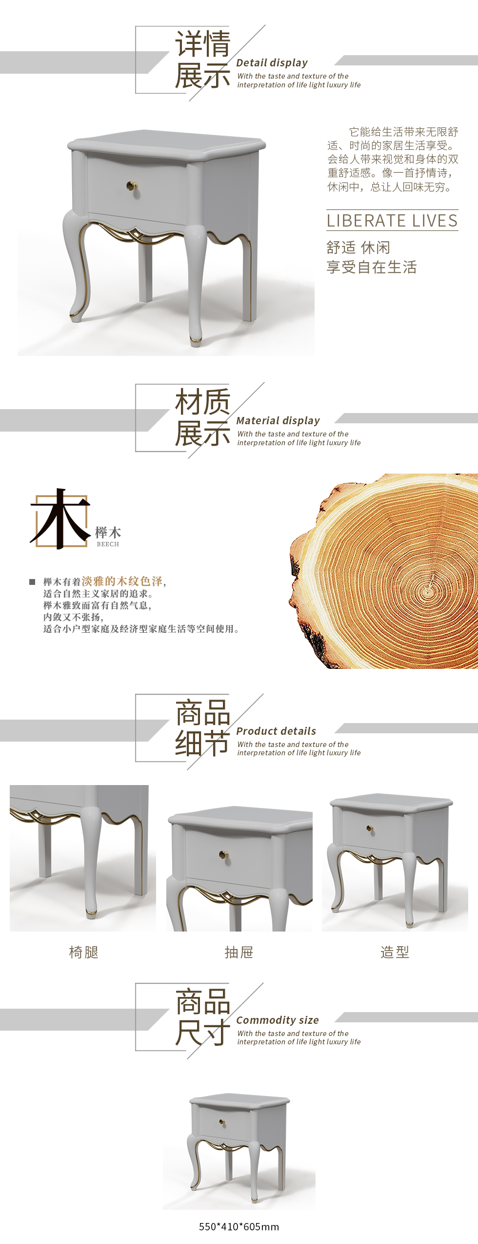 • 美式进口橡胶木+E1级实木多层+白蜡木木皮饰面床头柜