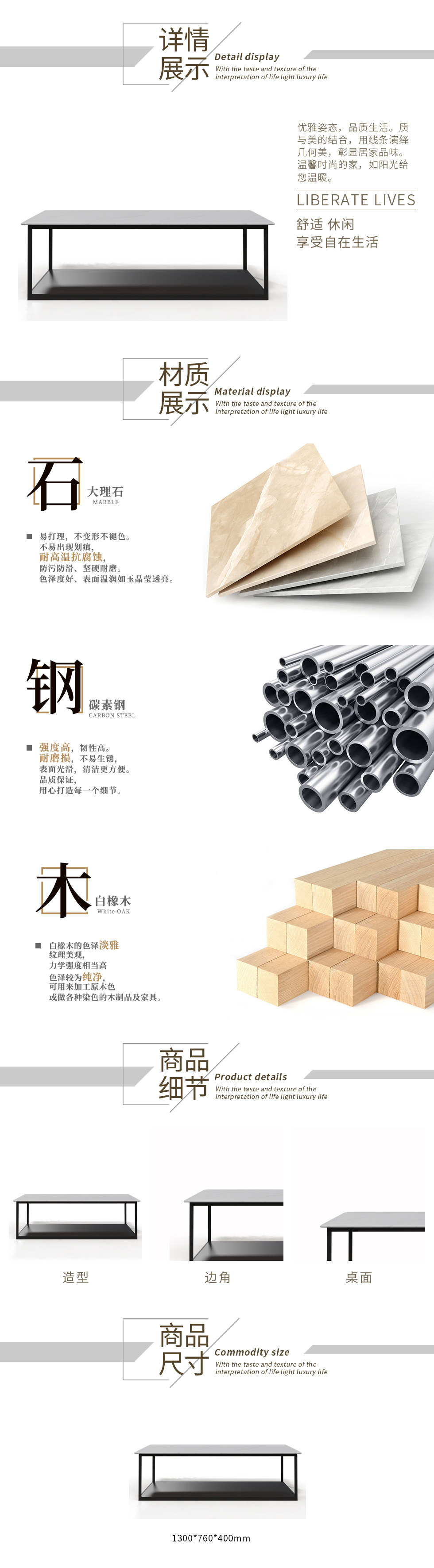 • 现代极简 大理石+进口欧洲白橡烟熏木皮板+碳素钢脚架 茶几