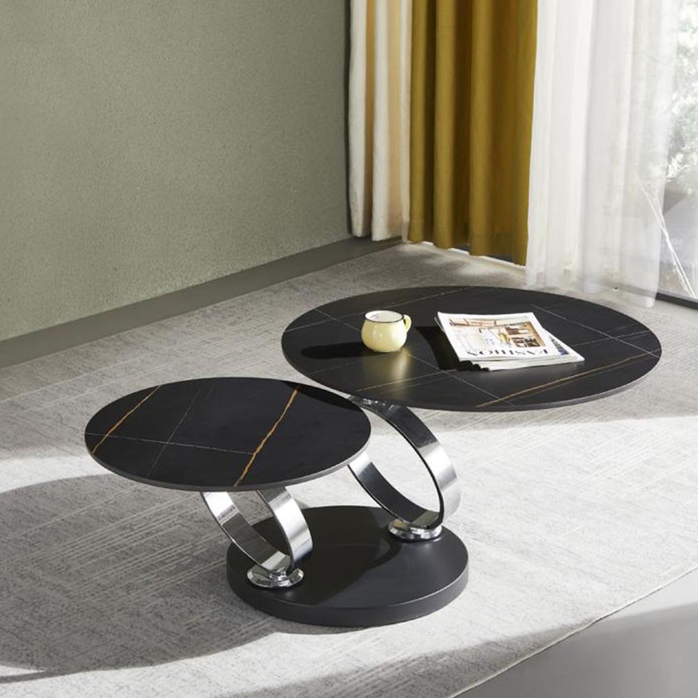 • 极简不锈钢拉丝+黄铜+岩板茶几