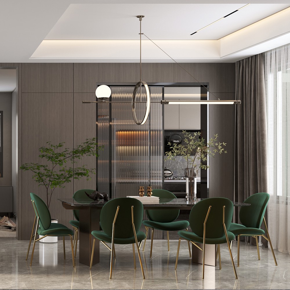 现代轻奢不锈钢钛金+绒布餐椅 - 570*530*830mm
