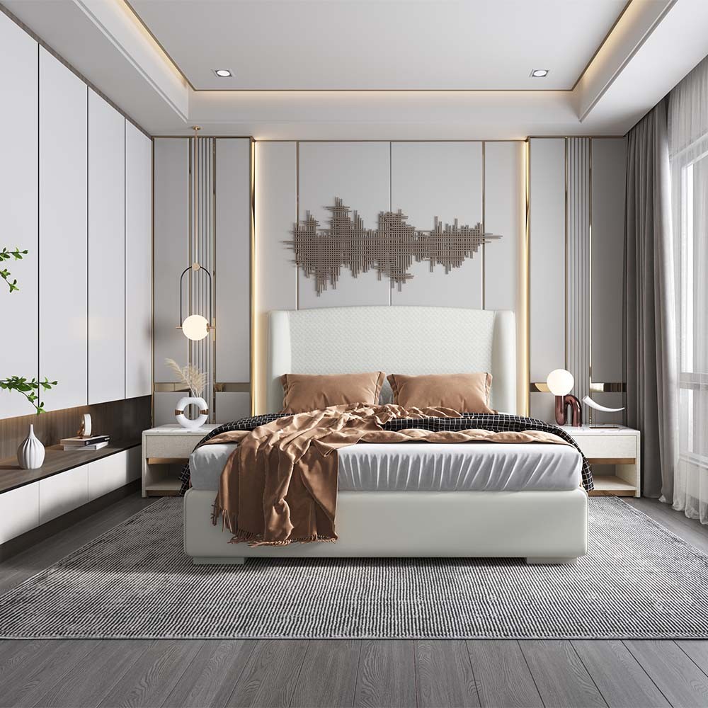 现代轻奢进口绒布间棉+落叶松实木框架1.8M床 - 2330*2000*1350mm