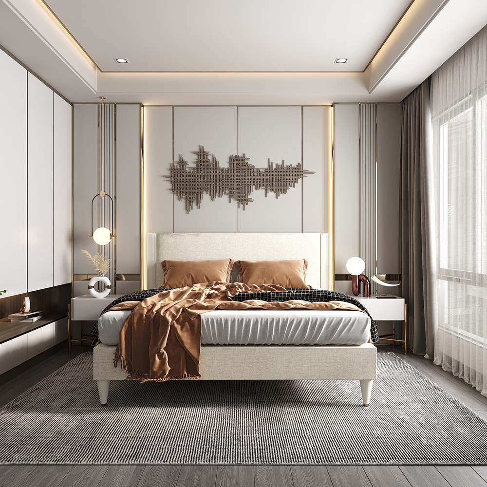现代轻奢白蜡木框架+精纺布1.5M床 - 2150*1670*1550mm