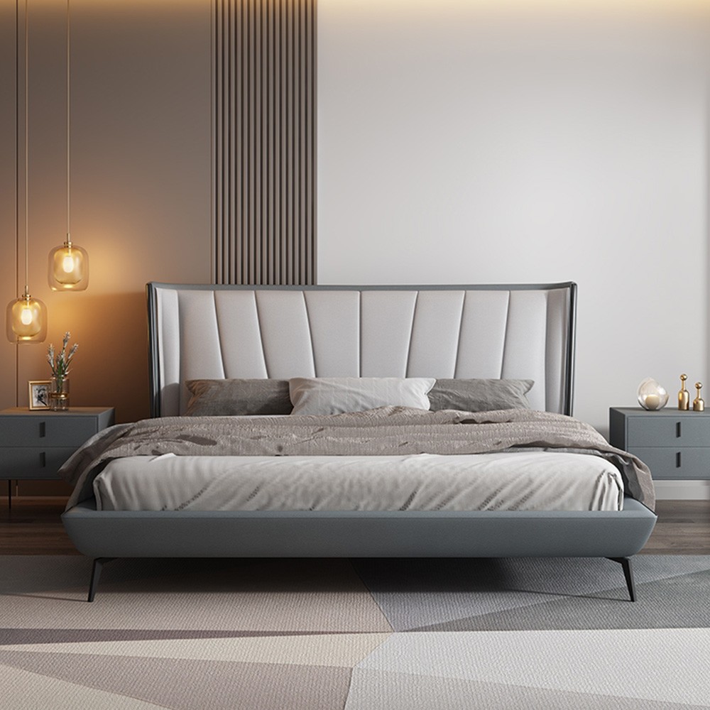 • 现代极简钢化玻璃+烟熏木皮+米白色哑光烤漆床头柜