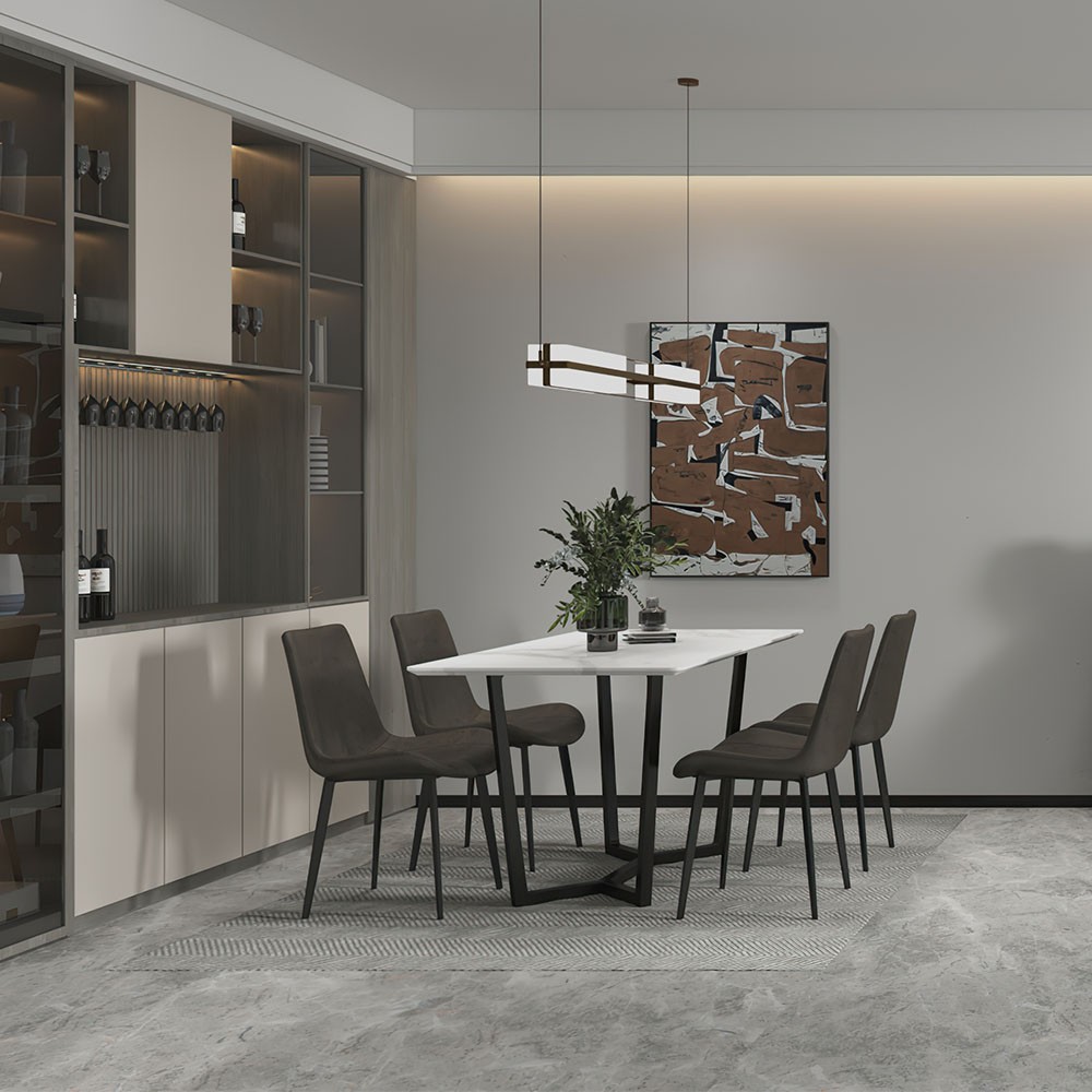 现代极简碳素铁脚+岩板长餐桌 - 1400*800*760*mm