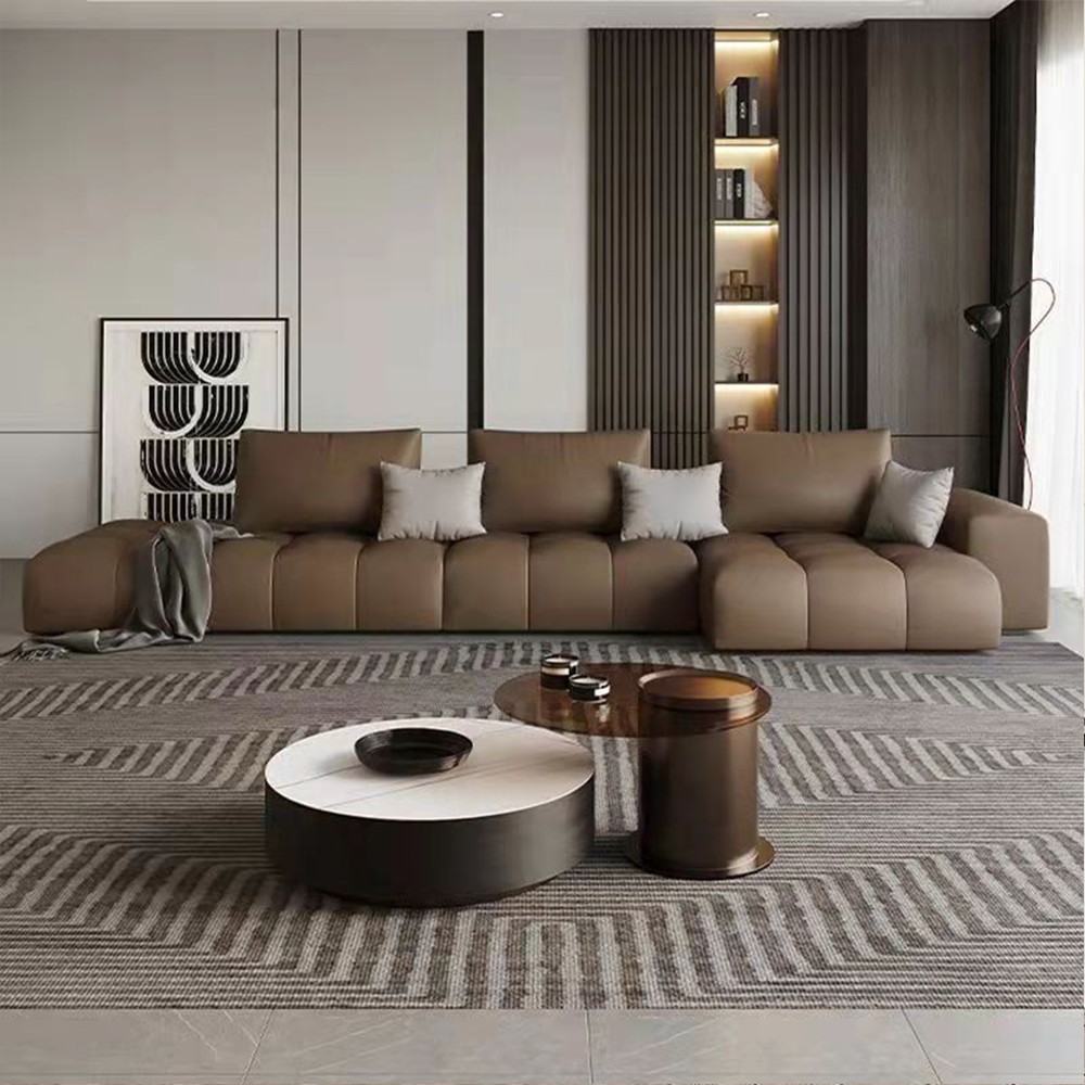 • 极简烟熏木皮+大理石茶几