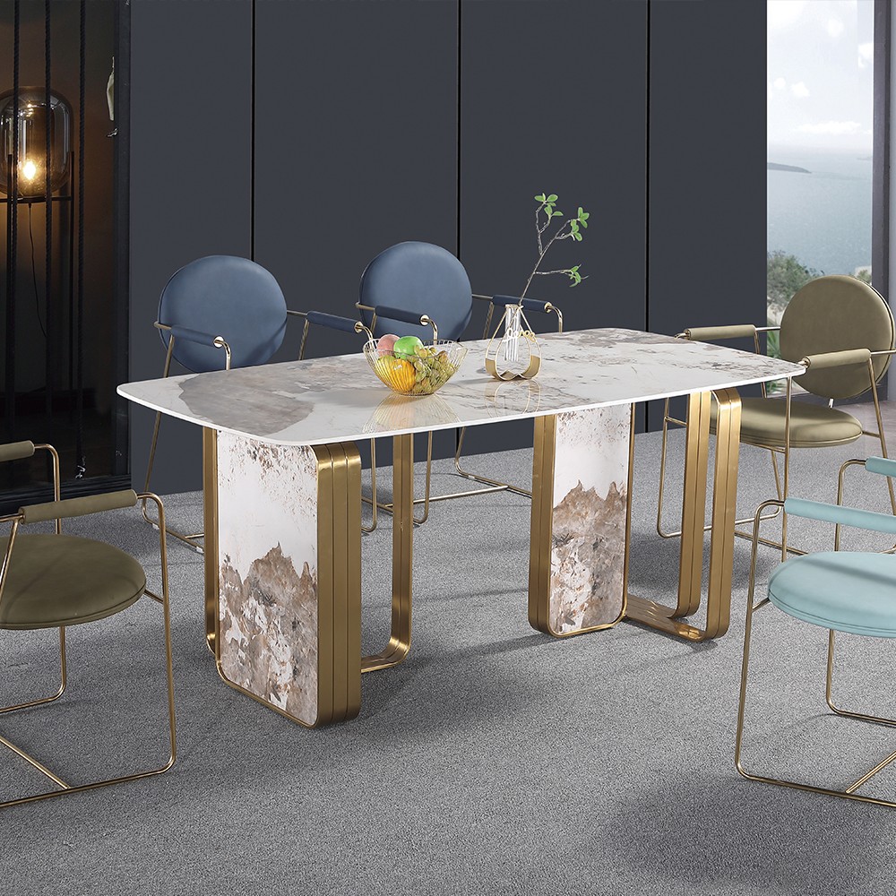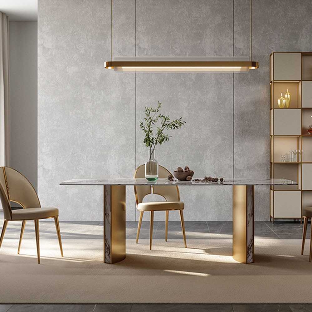 • 现代轻奢碳素钢+PU皮餐椅