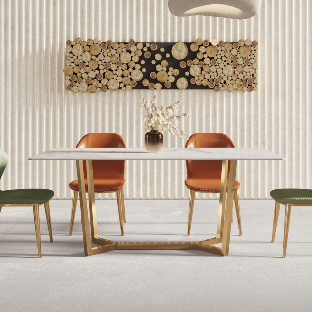 • 极简不锈钢钛金+岩板餐桌