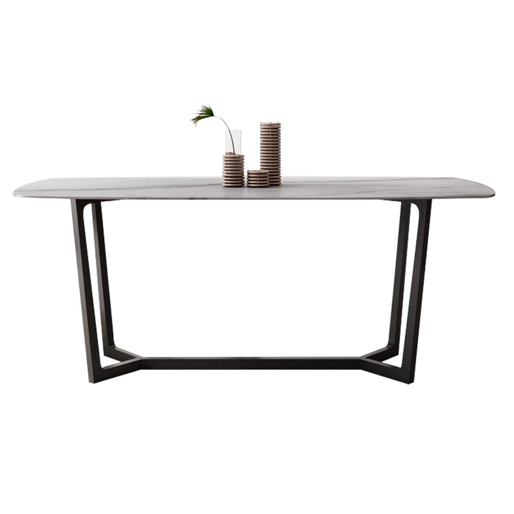 • 现代简约碳素铁脚+岩板长餐桌