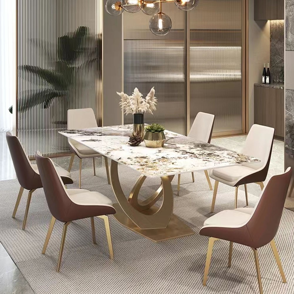 • 现代轻奢碳素钢+PU皮餐椅