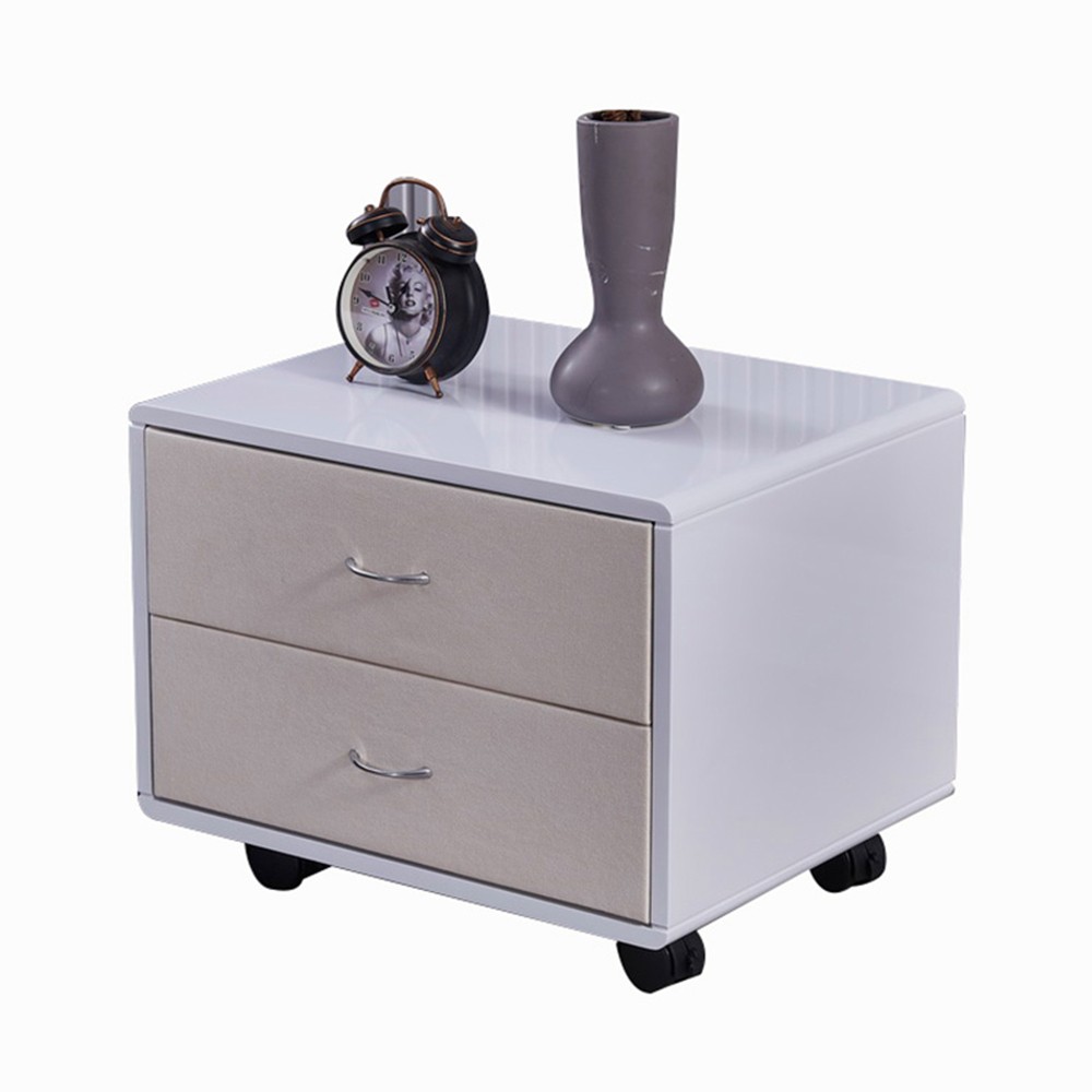 现代极简柜体白亮光油漆双抽麻布床头柜 - 500*400*380mm
