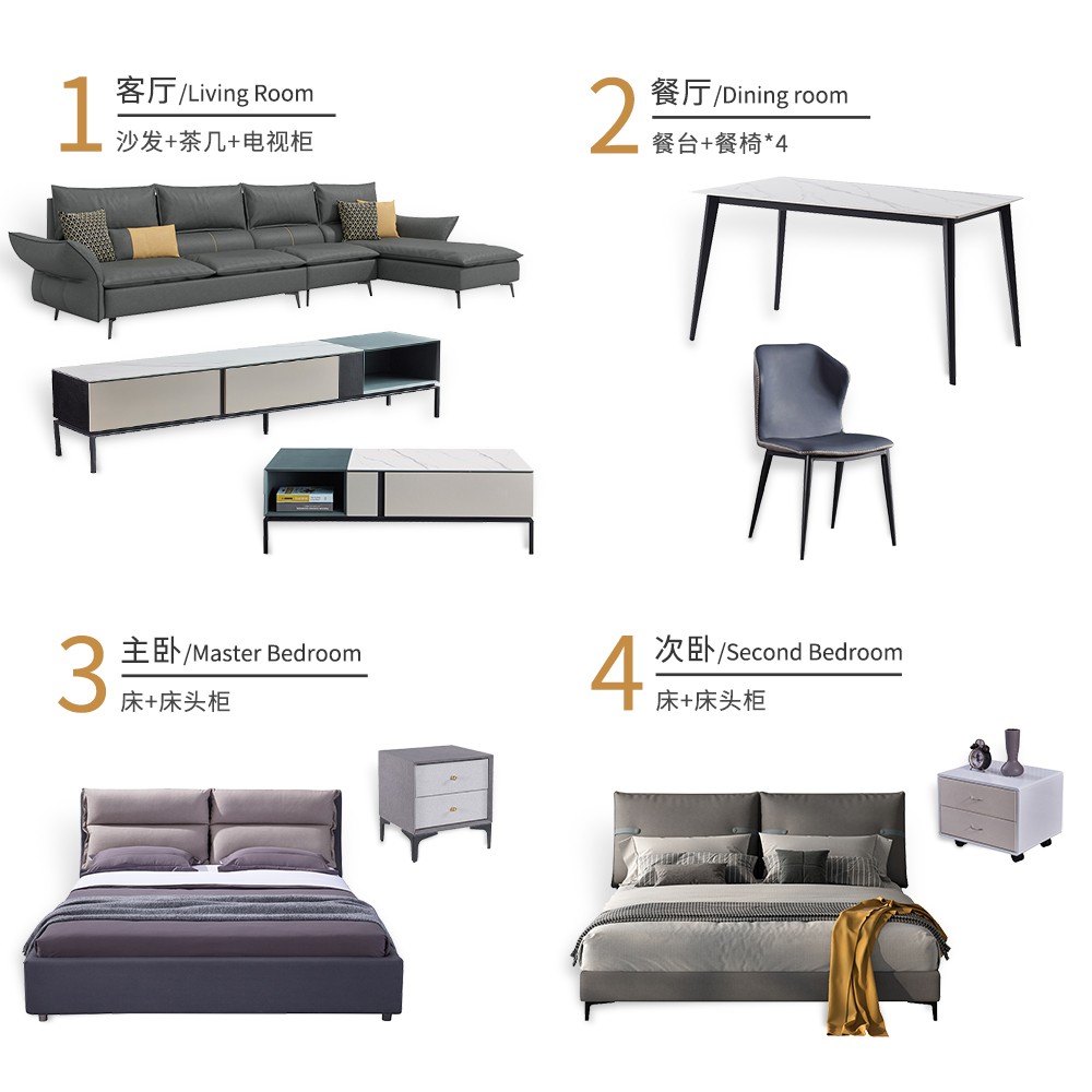 现代简约布艺+桉木+科技布+橡胶木+松木床 - 1960*2350*970H