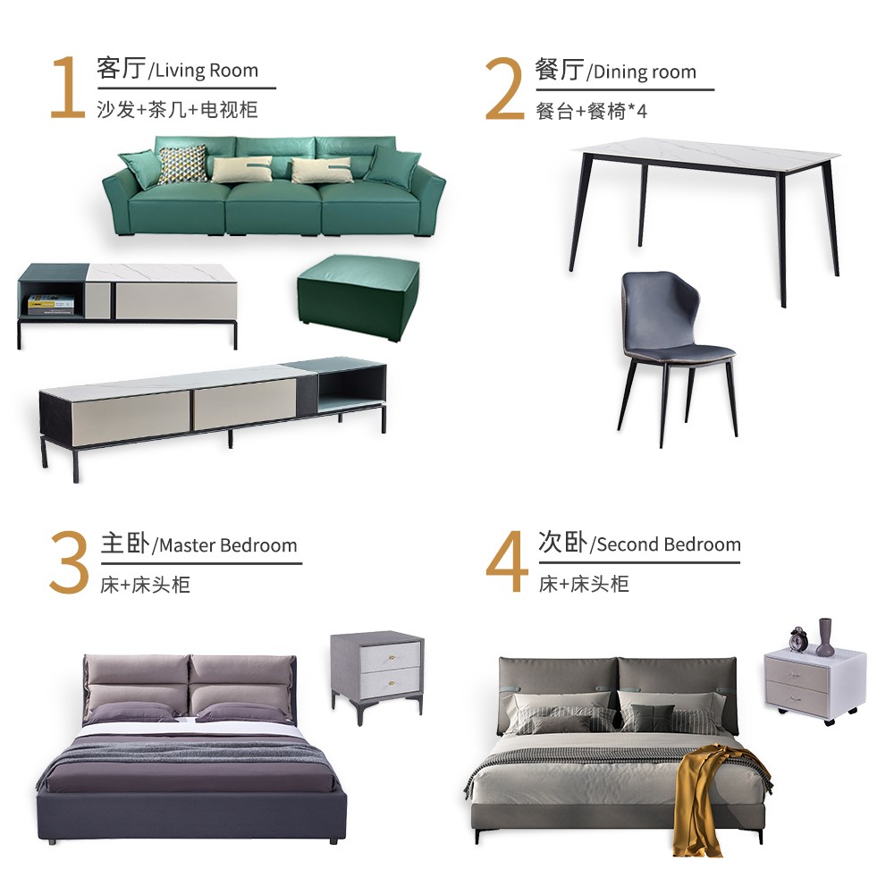 现代简约布艺+桉木+科技布+橡胶木+松木床 - 1960*2350*970H