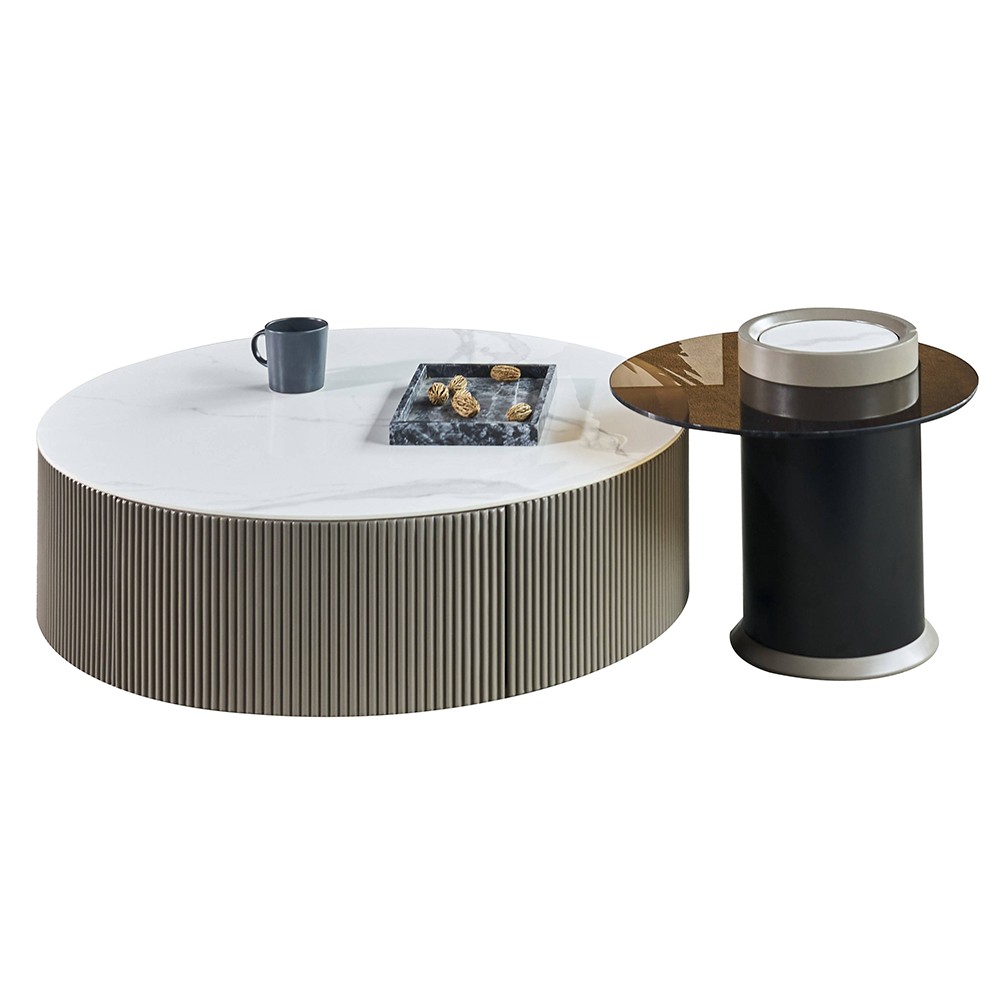 现代极简岩板+钢化茶色玻璃面组合茶几 - 大900*310小500*430