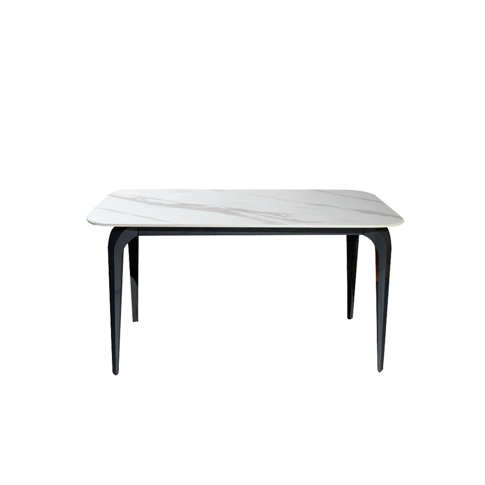 现代极简羊脂白玉亮光岩板面餐桌 - 1400*800*750mm