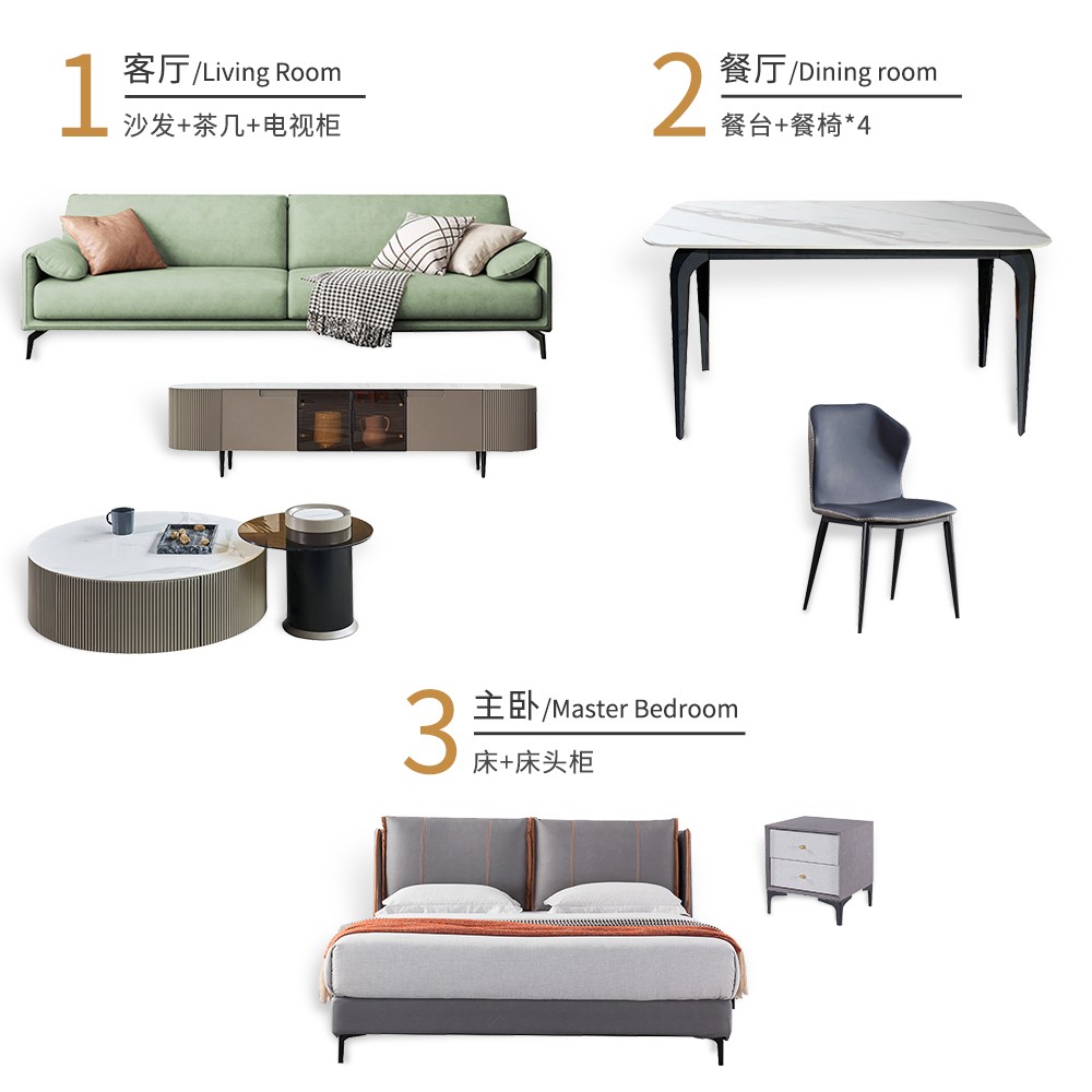 现代极简布艺+桉木/夹板结合内架+科技布面料1.8M床 - 1950*2110*1050mm
