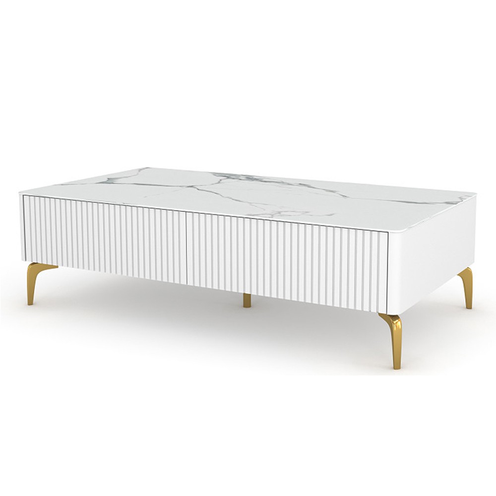 • 现代轻奢岩板台面+松木+不锈钢茶几