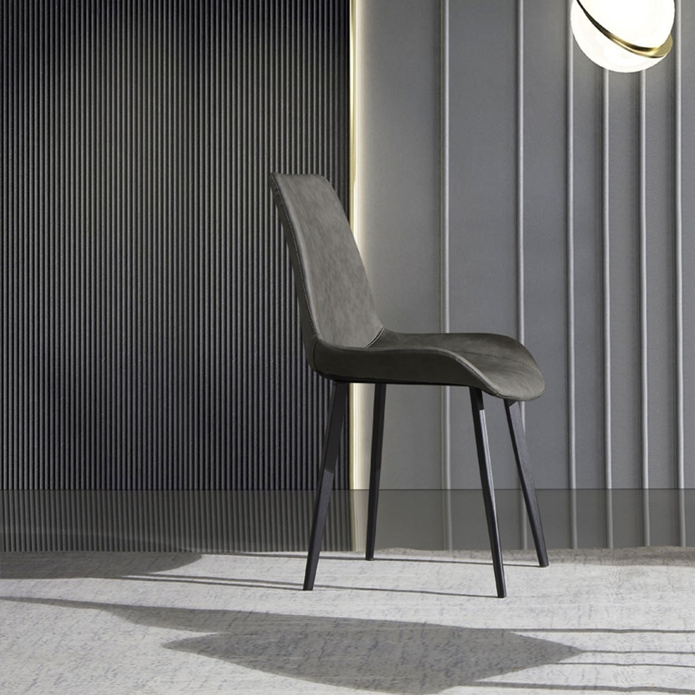 • 极简PU皮+黑砂脚架餐椅