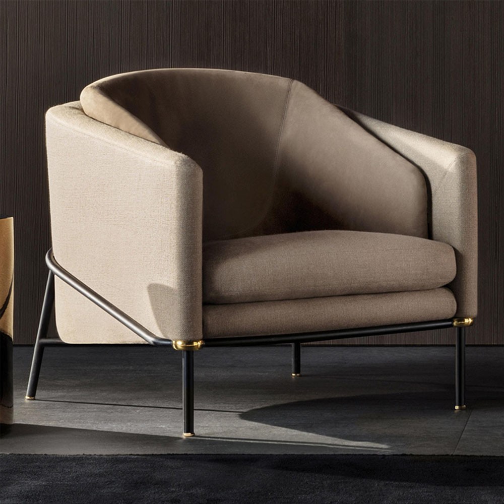 • 现代简约科技皮+粗麻+碳素钢+落叶松沙发
