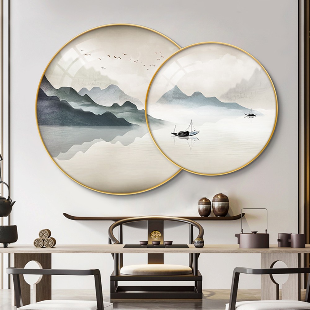 • 新中式喷油画布+机理油+铝合金圆框叠加挂画