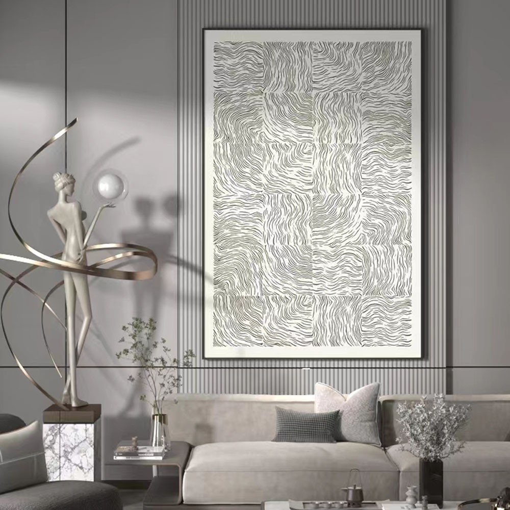 • 现代极简喷棉布+机理油+L框+无玻璃背板落地挂画