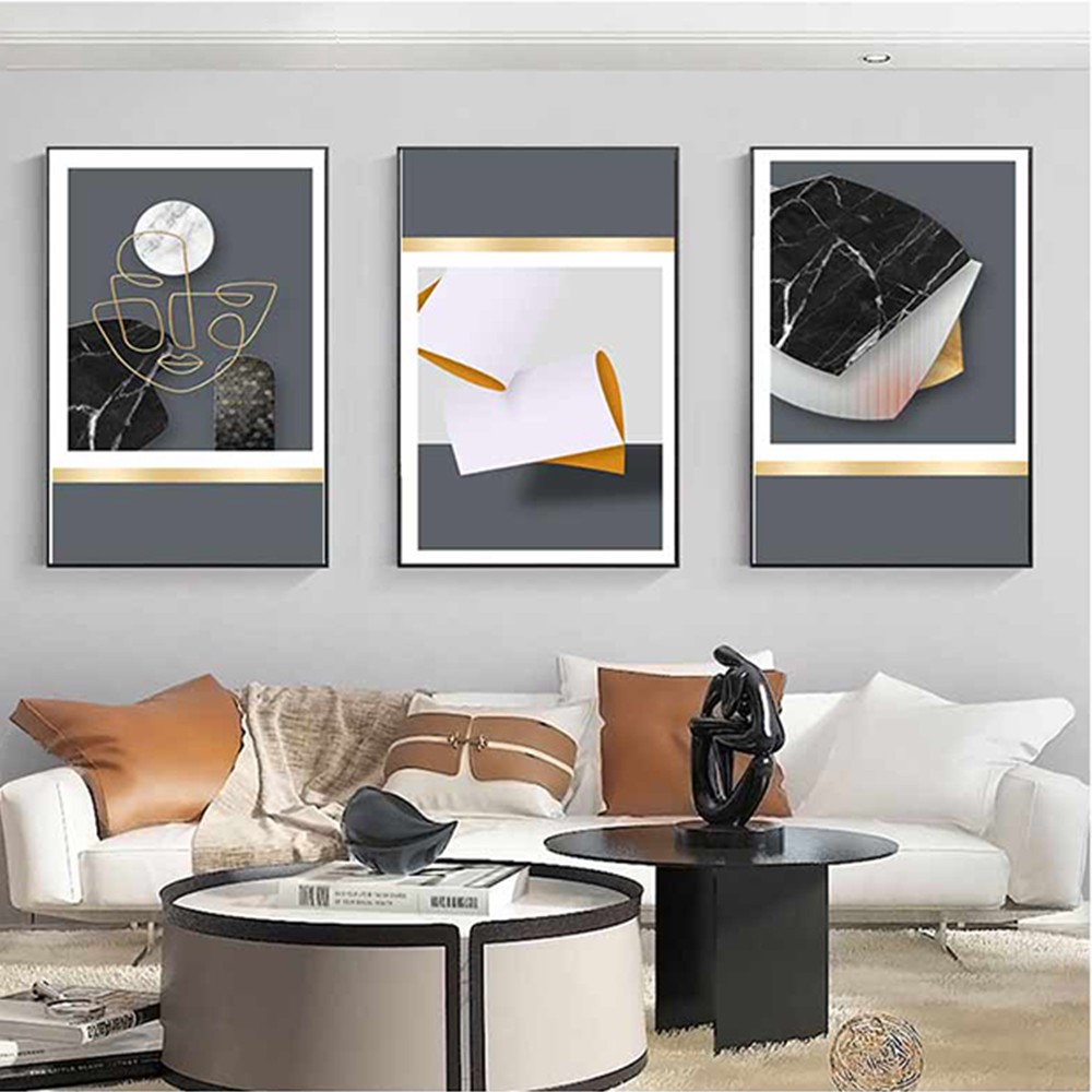 • 现代极简喷棉布+机理油+L框+无玻璃背板挂画
