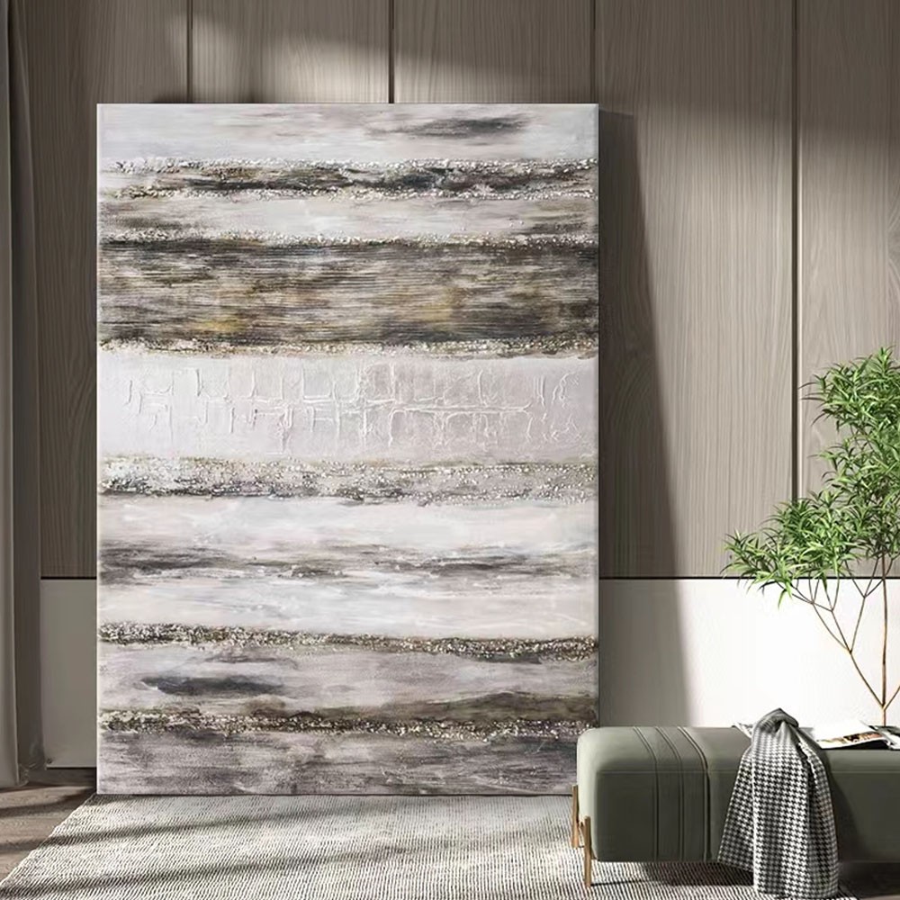 • 现代简约喷棉布+机理油+L框无玻璃背板挂画