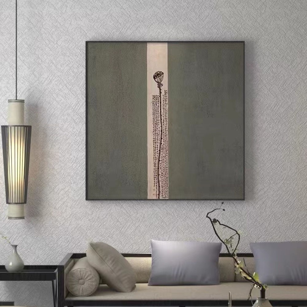 • 现代中式喷棉布+机理油+L框无玻璃背板挂画