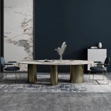 极简不锈钢拉丝+岩板餐桌