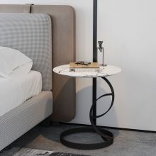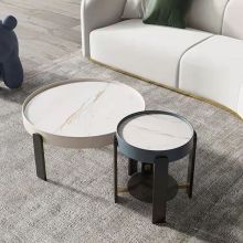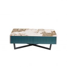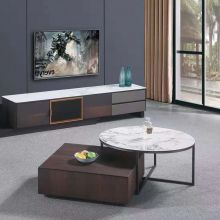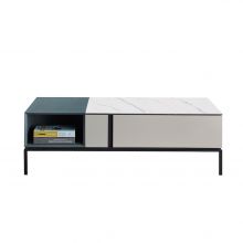 现代简约碳素钢+松木+岩板茶几