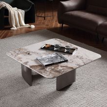 现代简约岩板面+松木+碳素钢茶几