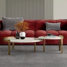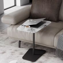 极简岩板+马鞍革茶几