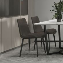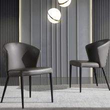 现代极简PU+黑色喷砂餐椅