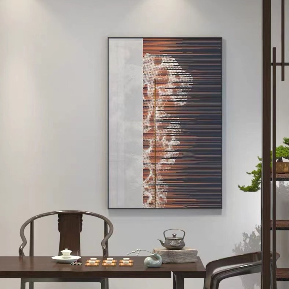• 喷棉布+机理油+L框无玻璃背板挂画